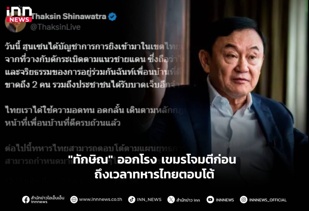 “ทักษิณ” ออกโรง เขมรโจมตีก่อน ถึงเวลาทหารไทยตอบโต้