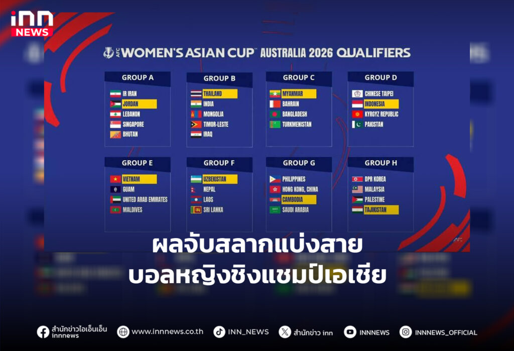 "ชบาแก้ว" ร่วมสาย อินเดีย, มองโกเลีย, ติมอร์, อิรัก ฟุตบอลหญิงชิงแชมป์เอเชีย รอบคัดเลือก