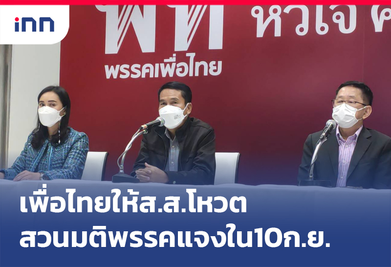 เพื่อไทยให้ส.ส.โหวตสวนมติพรรค แจงภายใน 10 ก.ย.นี้ ก่อนพิจารณาบทลงโทษ หากผิดขับออกจากพรรค