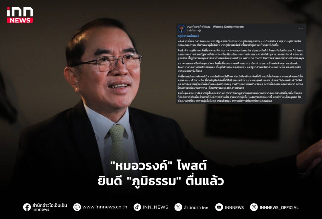 "หมอวรงค์" โพสต์ ยินดี "ภูมิธรรม" ตื่นแล้ว ฝากบอก"นายกฯอิ๊งค์" สถานการณ์แบบนี้ ให้ไปเลี้ยงลูกนะ ไม่ต้องมาทำเนียบยิ่งพูด เขมรยิ่งชอบ เพราะยิ่งทำให้ภาพประเทศอ่อนแอ