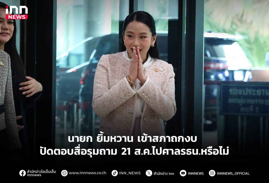 ”นายกฯอิ๊งค์“ ยิ้มหวาน แทนคำตอบ หลังสื่อรุมถาม 21 ส.ค.นี้ ไปศาลรัฐธรรมนูญเองหรือไม่ ขณะโพสต์ไอจี ทิ้งปริศนา ขอกำลังใจ