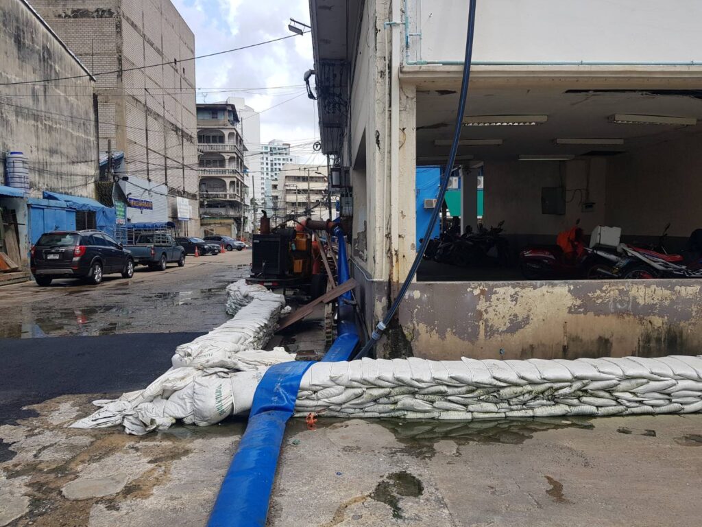 สะพานตากสิน-ท่าเรือสาทร วางแนวกระสอบทราย เตรียมพร้อมป้องกันน้ำเจ้าพระยาขึ้นสูงแล้ว