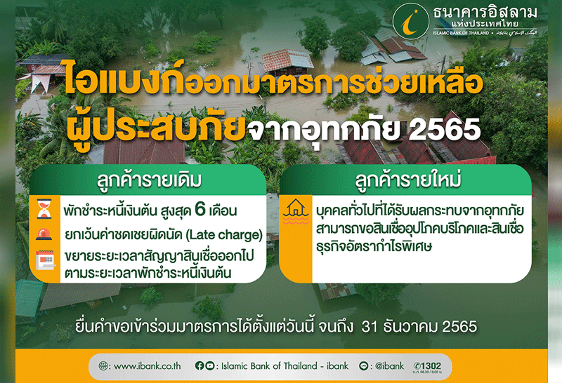 ธนาคารอิสลามแห่งประเทศไทย ห่วงใยเหตุการณ์น้ำท่วม ออกมาตรการช่วยเหลือให้ลูกค้าและประชาชนผู้ประสบภัย