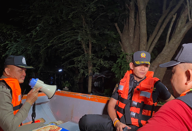 ตำรวจร่วมปภ.นั่งเรือออกตรวจดูแลบ้านน้ำท่วม