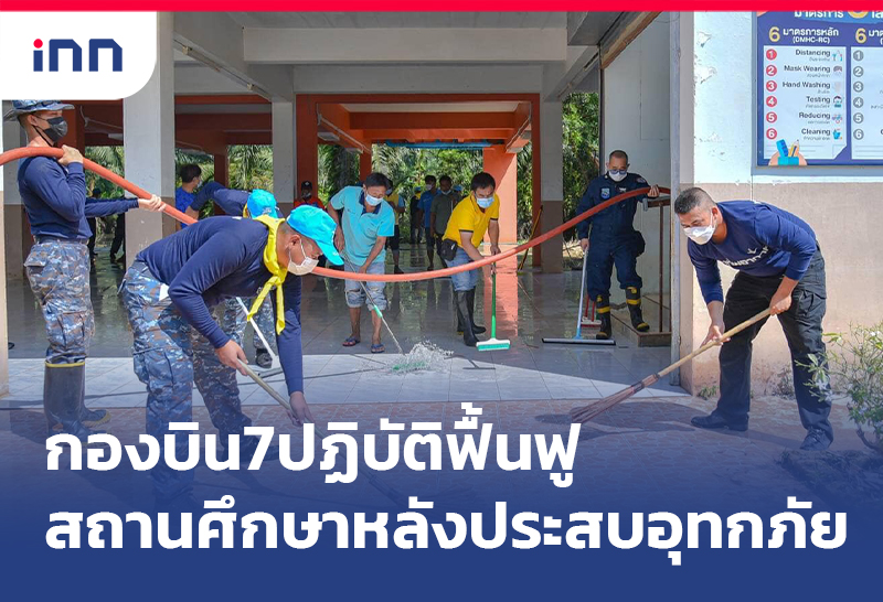 ศูนย์บรรเทาสาธารณภัยกองบิน 7 ปฏิบัติการฟื้นฟูสถานศึกษาหลังประสบปัญหาอุทกภัย เตรียมพร้อมเปิดเรียนการสอน