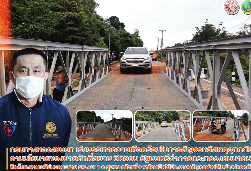 รมว.คมนาคม เน้นย้ำกรมทางหลวงชนบทเร่งฟื้นฟูเส้นทางหลังประสบอุทกภัย ติดตั้งสะพานเบลีย์บนถนนสาย ชพ.4011 จ.ชุมพร แล้วเสร็จ พร้อมเปิดให้ประชาชนสัญจรผ่านได้อย่างปลอดภัย