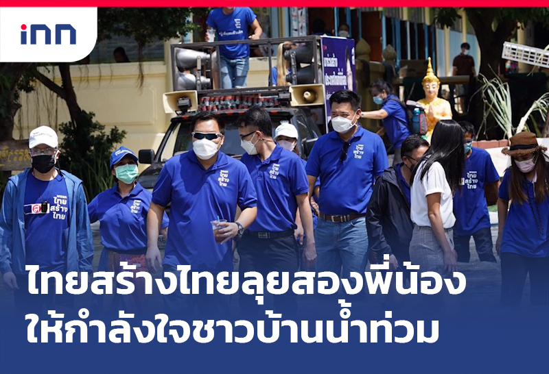 “ไทยสร้างไทย”ลุยสองพี่น้องให้กำลังใจชาวบ้านน้ำท่วม