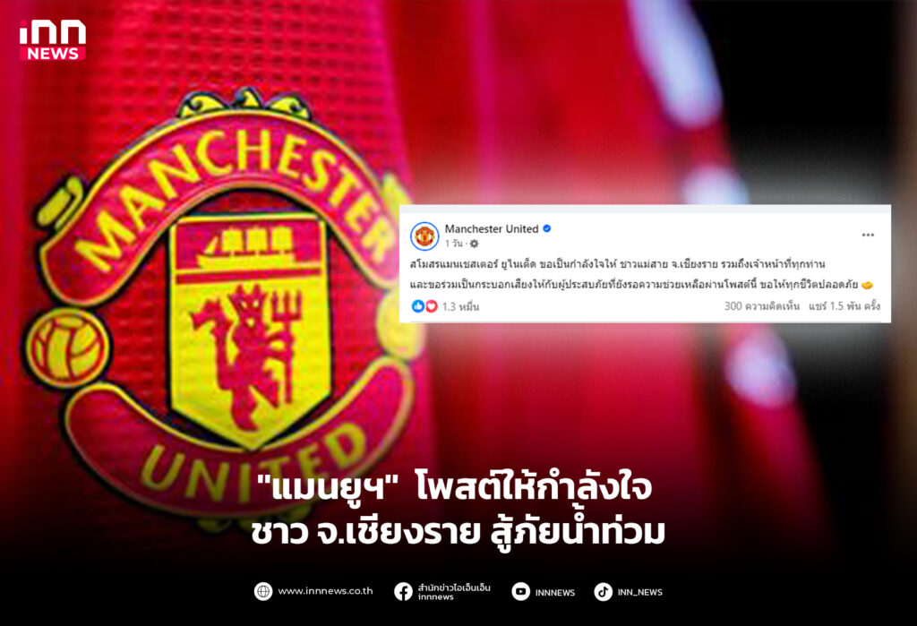 แมนเชสเตอร์ ยูไนเต็ด ทีมดังของศึกพรีเมียร์ลีก อังกฤษ โพสต์ให้กำลังใจ และร่วมเป็นกระบอกเสียงในการให้ความช่วยเหลือผู้ประสบภัยน้ำท่วมหนักที่จังหวัดเชียงราย
