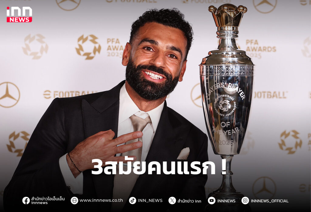 โมฮาเหม็ด ซาลาห์ หัวหอกตัวเก่งของ ลิเวอร์พูล ผงาดคว้ารางวัลนักเตะยอดเยี่ยมของสมาคมนักฟุตบอลอาชีพอังกฤษ (พีเอฟเอ) ประจำปี 2025 ไปครองอย่างยิ่งใหญ่
