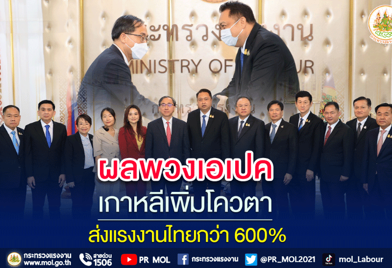 รมว.แรงงาน เผย ผลพวงประชุมเอเปค เกาหลีเพิ่มโควตาส่งแรงงานไทยทำงานเพิ่มขึ้นในปี 2566