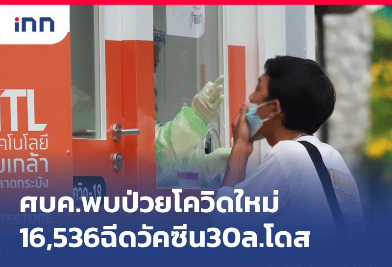 ศบค.เผย ไทยป่วยโควิดเพิ่ม 16,536 ราย ฉีดวัคซีนแตะ 30 ล้านโดส