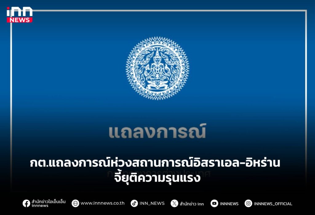 กต.แถลงการณ์ ห่วงสถานการณ์อิสราเอล-อิหร่าน ตึงเครียดหนัก เรียกร้องทุกฝ่ายยุติใช้ความรุนแรง เร่งช่วยคนไทยออกจากพื้นที่เสี่ยง