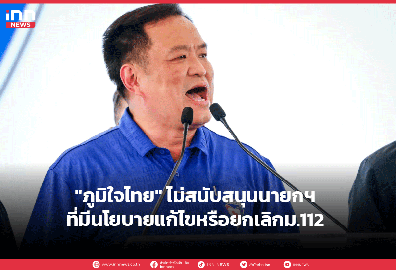 “ภูมิใจไทย” ไม่สนับสนุนนายกฯที่มีนโยบายแก้ไขหรือยกเลิกม.112