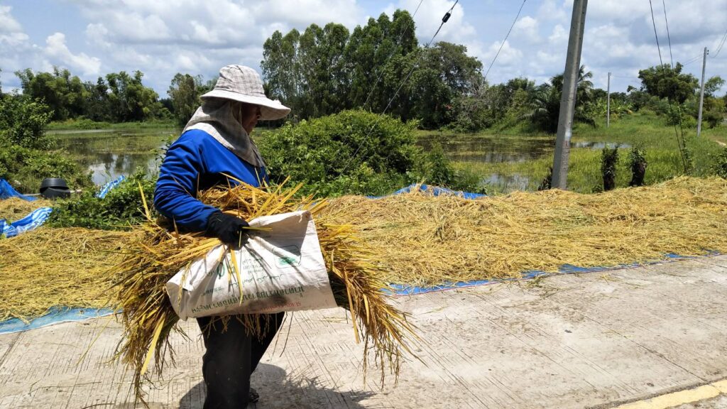 ชาวนาโคราช เร่งเกี่ยวข้าวใส่เรือท้องแบนหนีน้ำท่วม