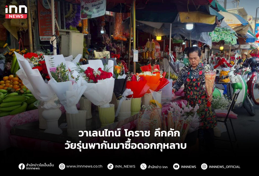 โคราช วาเลนไทน์ ต่างอำเภอคึกคัก กลุ่มวัยรุ่นพากันมาซื้อดอกกุหลาบมอบให้คนที่รัก