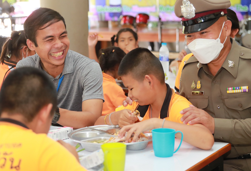 ตำรวจทางหลวงโคราช จับมือจิตอาสา มีแล้วแบ่งปัน เลี้ยงอาหารเที่ยงเมนูเด็ดไก่เคเอฟซี ให้เด็กพิการทางสายตา เขาใหญ่
