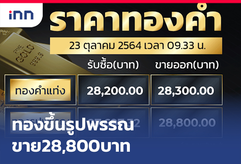 สมาคมค้าทองคำประกาศราคาปรับขึ้น 50 บาททองคำแท่ง รับซื้อบาทละ 28,200 บาท ขายออกบาทละ 28,300 บาท ทองรูปพรรณ รับซื้อบาทละ 27,697.32 บาท ขายออกบาทละ 28,8000 บาท