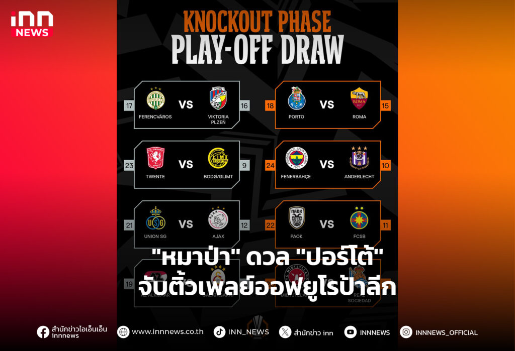 โรม่า เตรียมต้องดวลกับ ปอร์โต้ ส่วน เรอัล โซเซียดาด จะได้เจอกับ มิดทิลลันด์ ในการจับสลากประกบคู่สำหรับยูโรป้าลีกรอบเพลย์