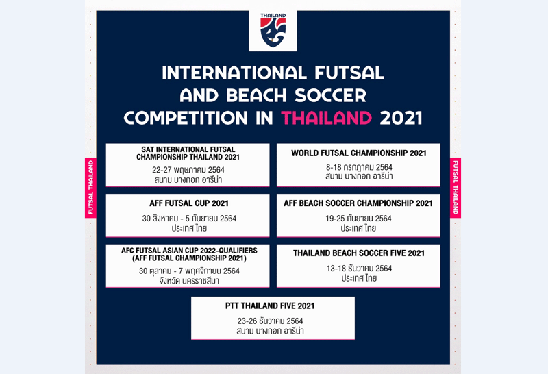 ไทยพร้อมเดินหน้าจัดศึกฟุตซอลและฟุตบอลชายหาดให้แฟนๆ ได้เชียร์กันเต็มที่ถึง 7 รายการตลอดปี 2021