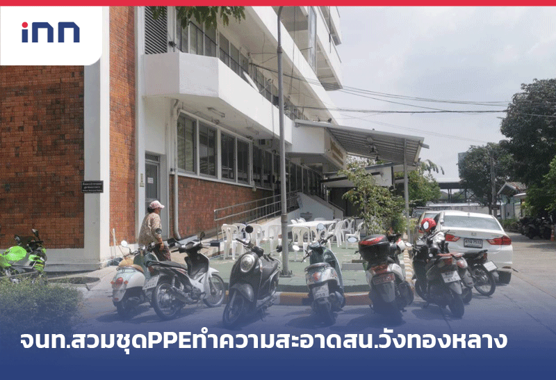 เจ้าหน้าที่สวมชุด PPE ทำความสะอาด สน.วังทองหลาง