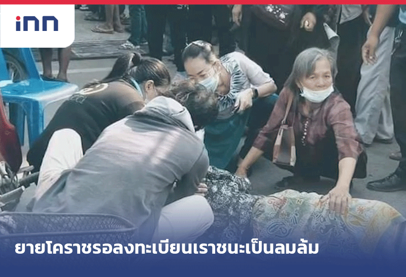 โซเชี่ยลแชร์ว่อน ยายชาวโคราช รอลงทะเบียนเราชนะ เป็นลมล้มกลางถนน