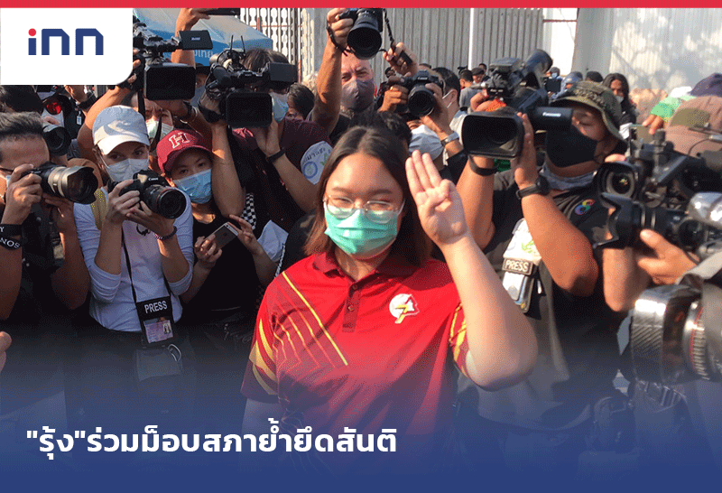 รุ้ง ปนัสยา ร่วมม็อบสภาย้ำยึดสันติ โต้บึ้มระเบิดปิงปอง 40 ลูก ห่วงรุนแรง ยุติ 21.30 น.
