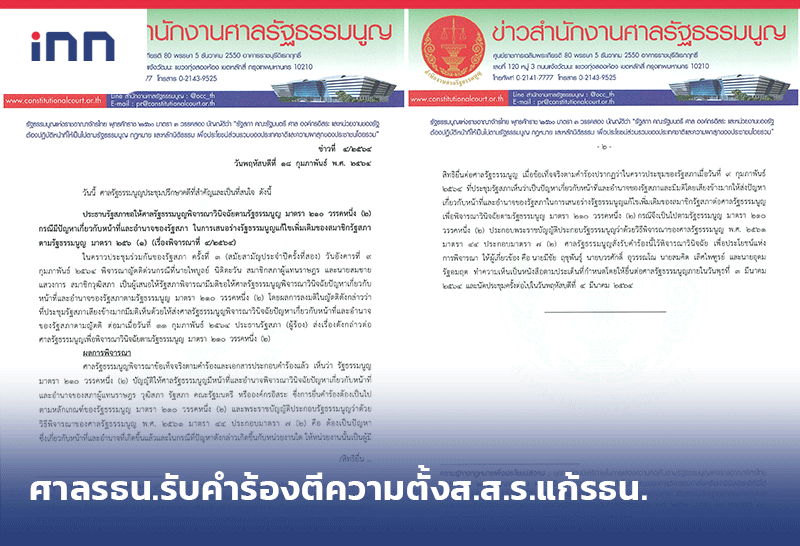 ศาลรธน. รับคำร้องญัตติ"ไพบูลย์" วินิจฉัยอำนาจรัฐสภาเสนอร่างแก้ไขรัฐธรรมนูญเพิ่มเติม