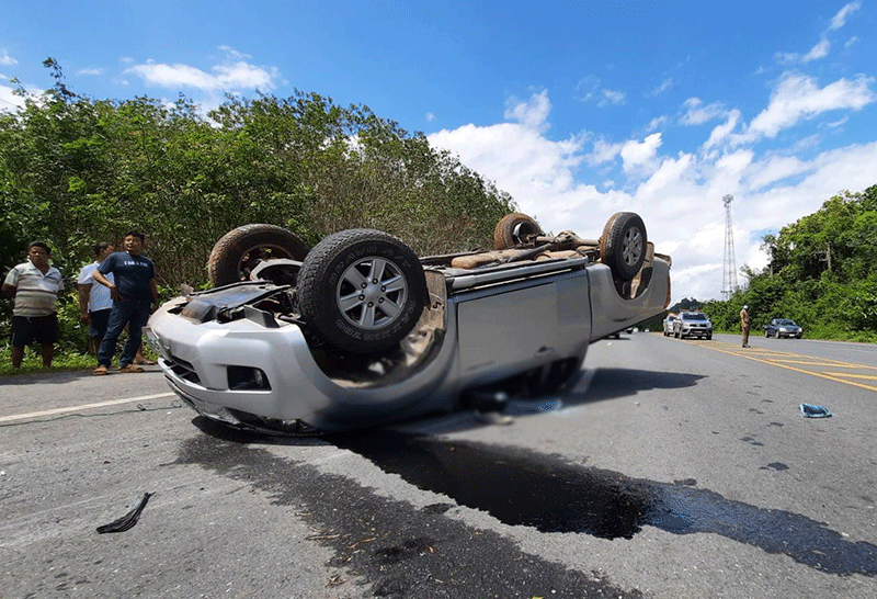 เกิดอุบัติเหตุรถยนต์กระบะเสียหลักพลิกคว่ำ เจ็บ 15 สาหัส 3 ที่ จ.พัทลุง