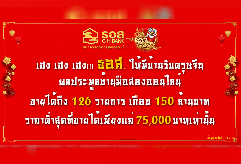 ธอส.เผยประมูลบ้านมือสองออนไลน์ เดือนกุมภาพันธ์รวม 126 รายการ
