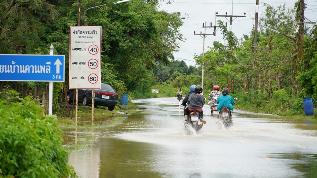 มวลน้ำฝายท่าแนะเอ่อล้นท่วมในพื้นที่อ.ควนขนุน