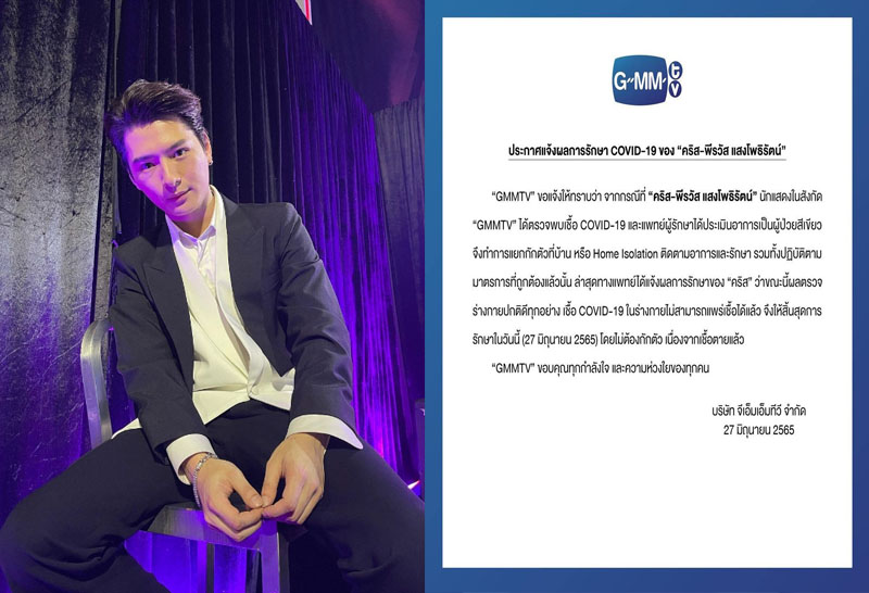 ต้นสังกัดแจ้งข่าวดี “คริส พีรวัส” หายจากติดเชื้อโควิด-19 แล้ว