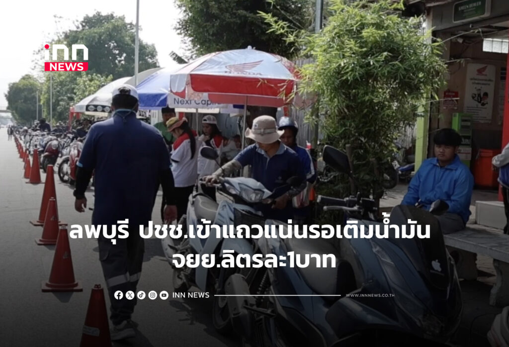 ลพบุรี ปชช.เข้าแถวแน่นรอเติมน้ำมัน จยย.ลิตรละ1บาท