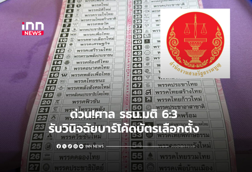 ด่วน!ศาล รธน.มติ 6:3 รับวินิจฉัยบาร์โค้ดบัตรเลือกตั้ง