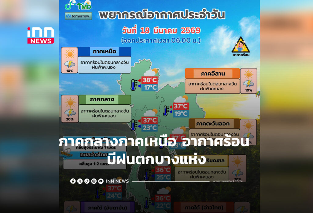 ภาคกลางภาคเหนือ อากาศร้อน มีฝนตกบางแห่ง