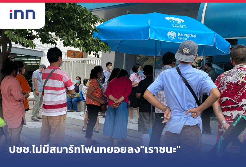 ประชาชนที่ไม่มีสมาร์ทโฟนทยอยเดินทางมาลงทะเบียน"เราชนะ"ที่ธนาคารกรุงไทยสาขาโชคชัย4